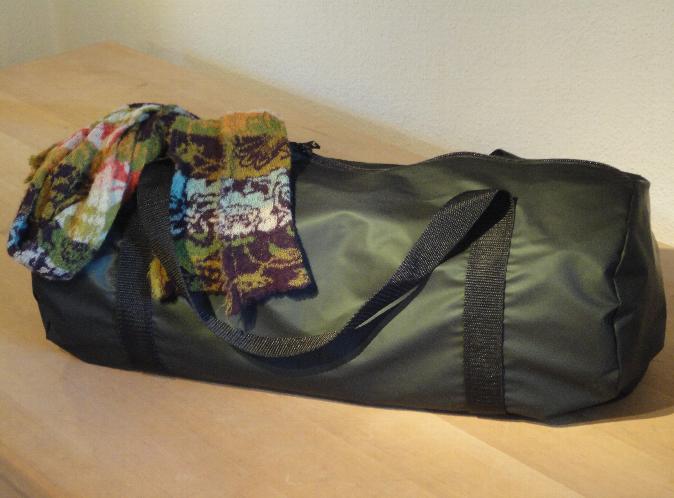 Our weatherproof apparel bag (ca. 50 cm long).